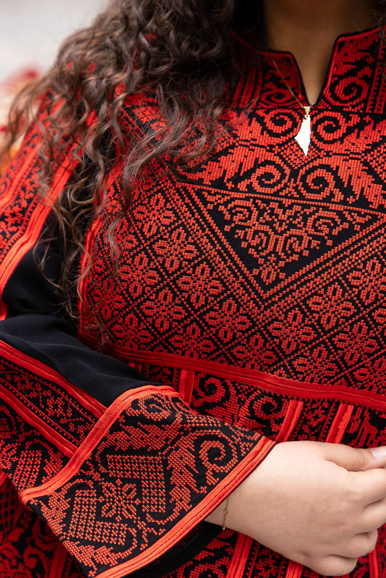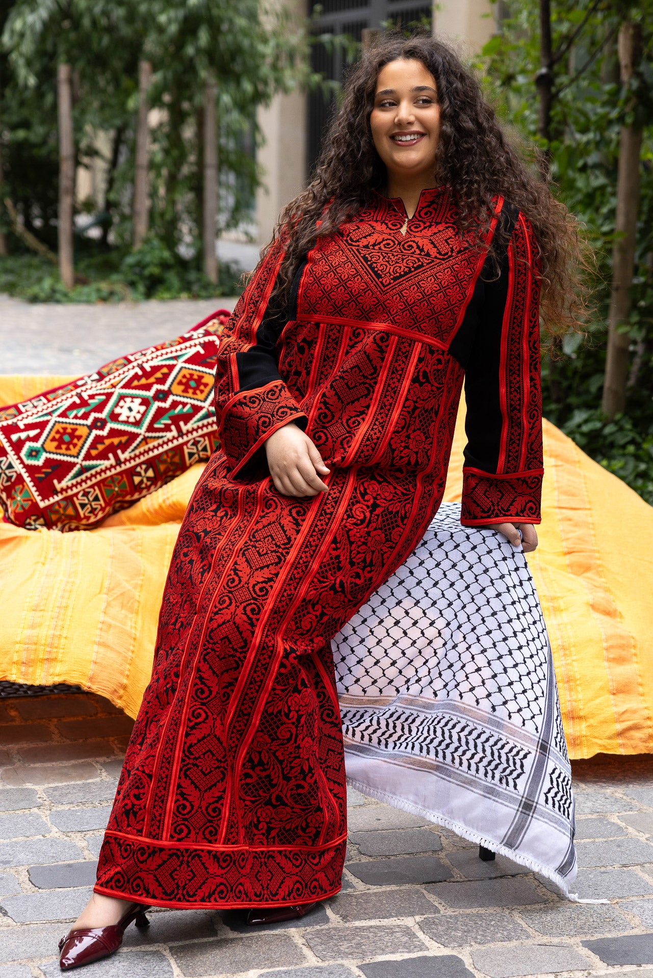 - Inclus une ceinture brodée en tatreez traditionnel